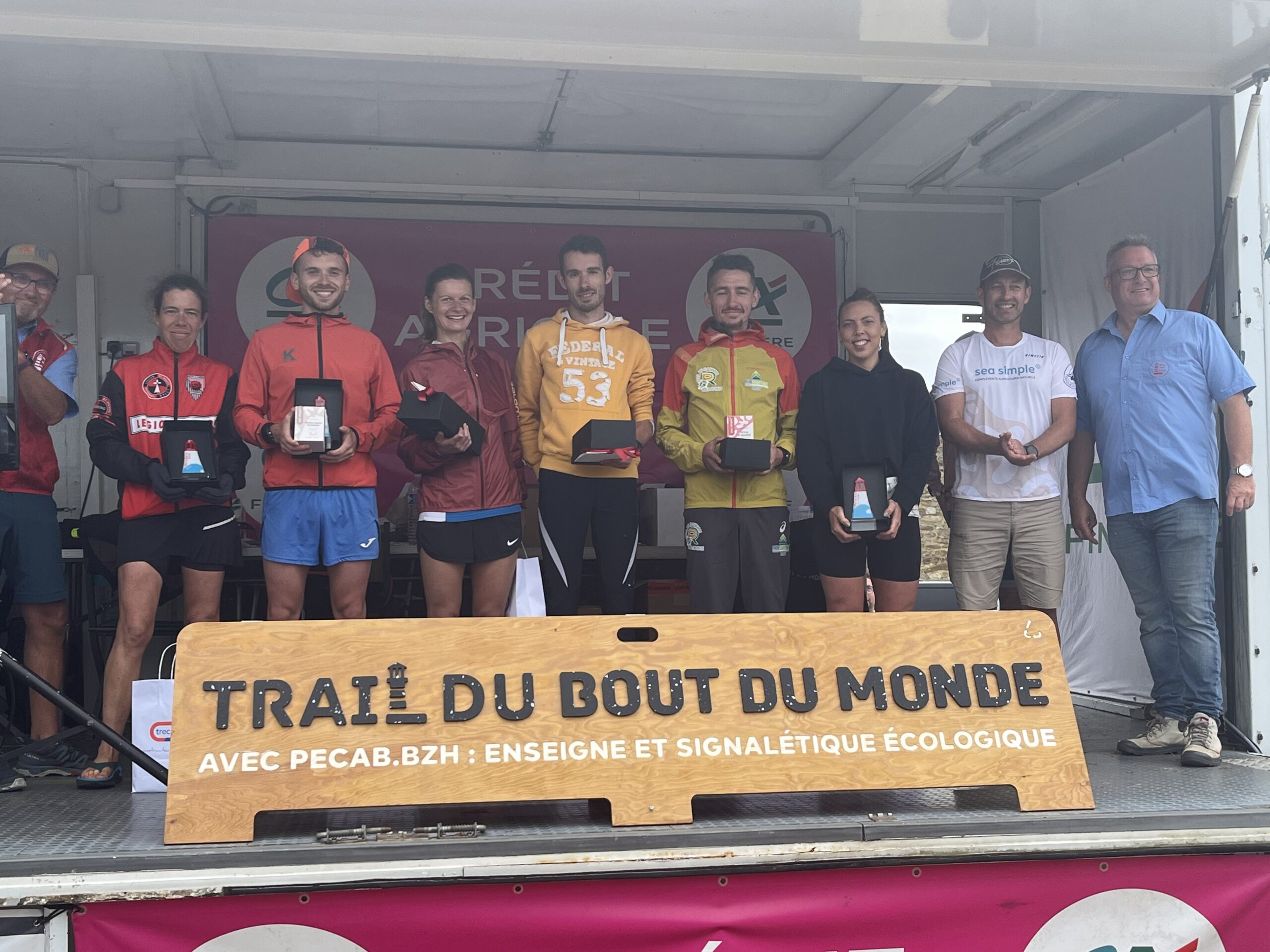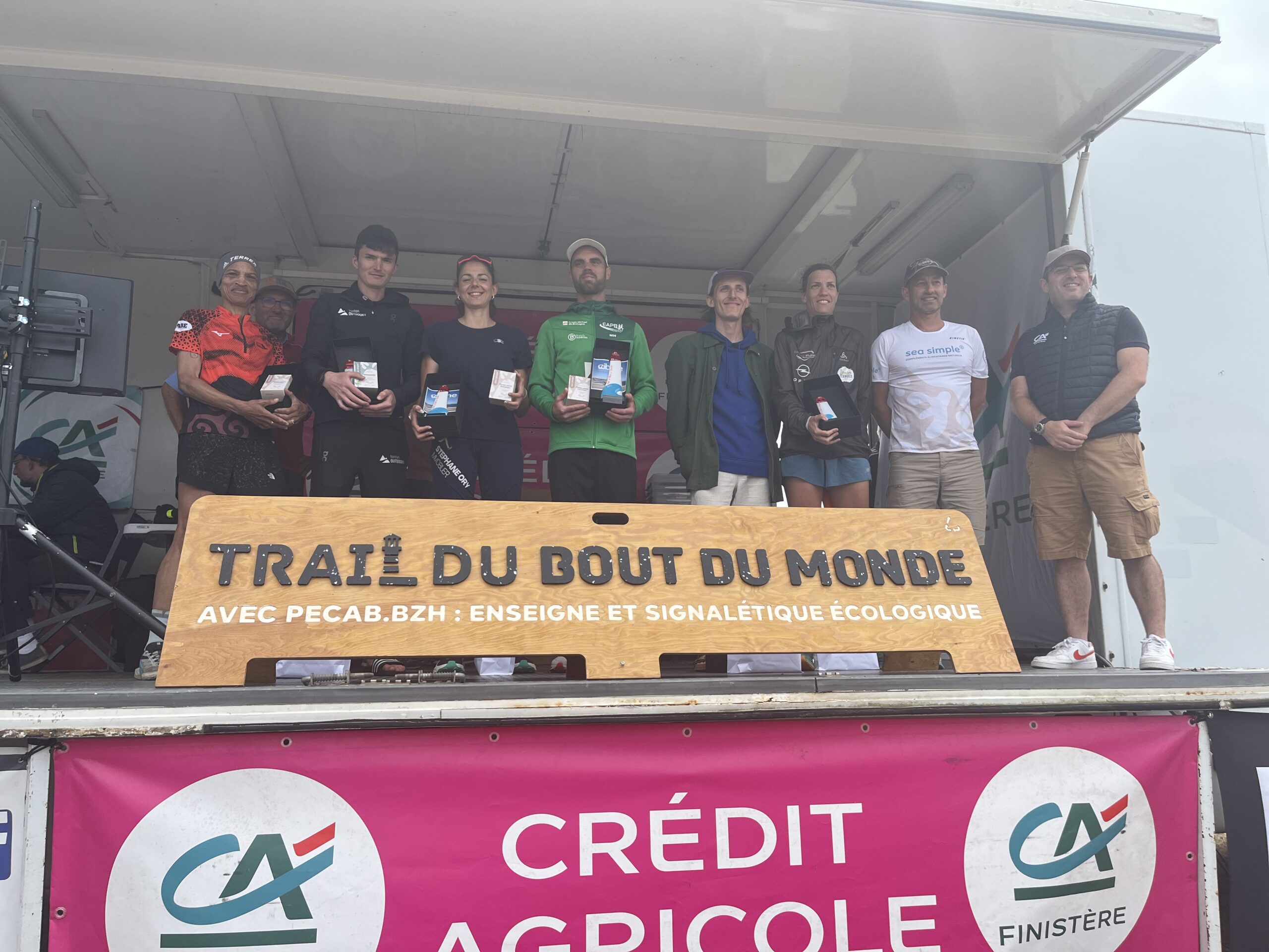Le podium masculin et féminin du 37km du Trail du Bout du Monde 2025